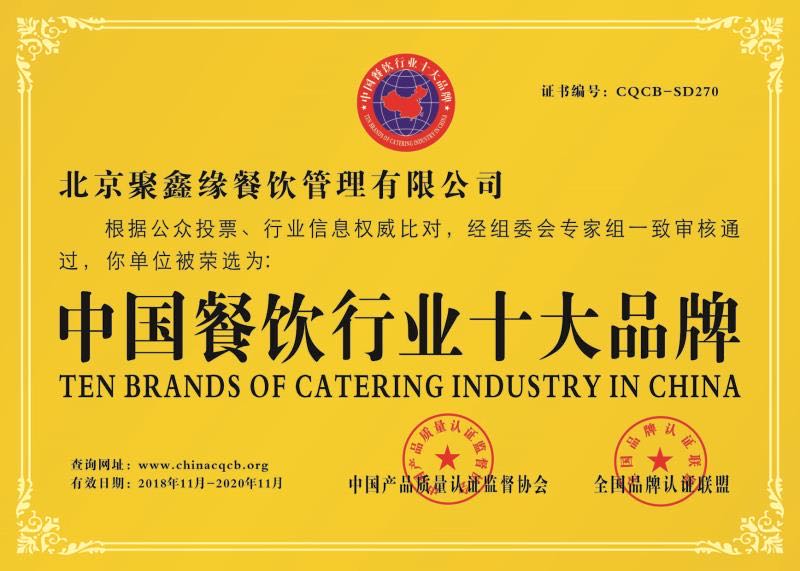 北京聚鑫緣餐飲管理有限公司是由目前餐飲界領(lǐng)軍人物,全國飯店業(yè)高級評委、國家級技能競賽裁判員、高級營養(yǎng)配餐師、2005年第三屆國際食神爭霸賽個人金獎、銀獎得主、中國烹飪大師,張寶田先生創(chuàng)辦,注冊資金:3888萬元,北京市政府采購定點服務(wù)單位,公司成立以來相關(guān)業(yè)務(wù)已覆蓋全國部分城市。本公司是國家有關(guān)部委批準(zhǔn)建立的以管理與經(jīng)營各企事業(yè)、大中專院校餐廳、機關(guān)、食堂承包托管、酒店酒樓人才勞務(wù)輸出、前期策劃籌建、餐飲管理咨詢、廚房設(shè)備規(guī)劃安裝、糧油及原材料配送等綜合性后勤服務(wù)機構(gòu)。